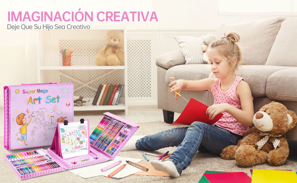 Surprenez votre enfant avec cette étonnante œuvre d'art, qui contient 208 pièces fournitures artistiques dans une seule mallette. Un carnet de croquis est intégré à la mallette !