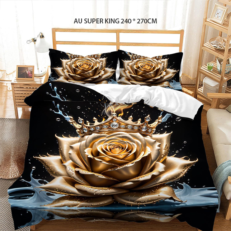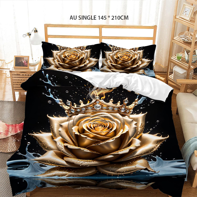 📢📢55 % DE RÉDUCTION !!! ✨Ensemble de housse de couette fleurie dorée de luxe