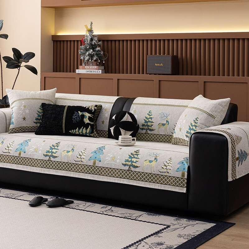 ✨ Housse de Canapé en Chenille Douce – Dos antidérapant en silicone, motif cerf élégant, lavable en machine, confort toute l’année !
