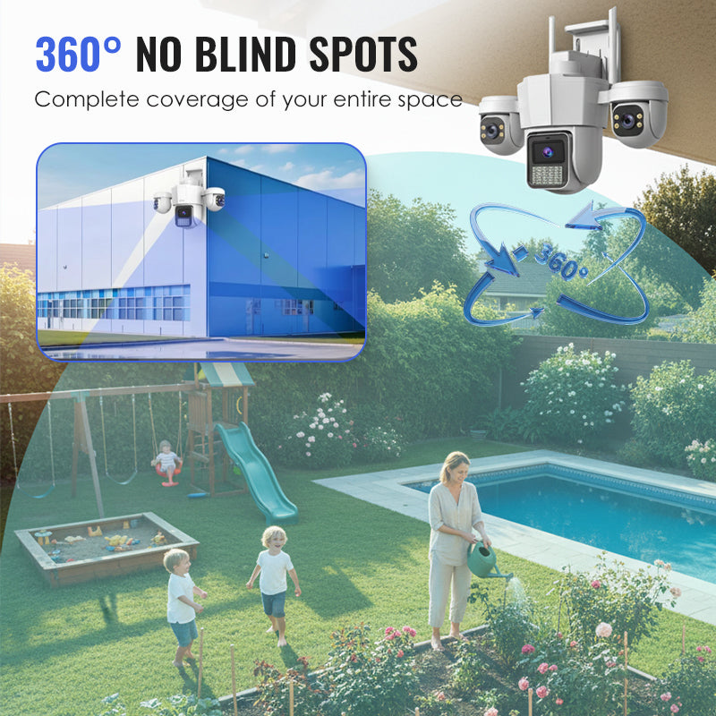 COUVERTURE PANORAMIQUE À 360° - Équipée de quatre moteurs puissants, cette caméra effectue une rotation complète à 360°. Surveillez chaque recoin de votre propriété sans interruption, pour une surveillance complète et exhaustive de la zone à partir d'un seul appareil.