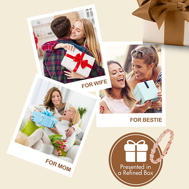 Contenu : 1 bracelet magnétique en cuivre à liens cœur étincelants